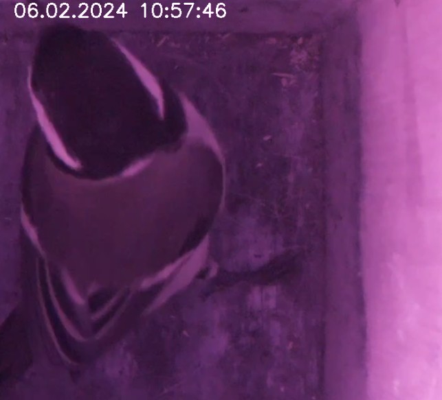 In zwei Videos, beide an Dienstagen um ziemlich exakt 11 Uhr, aber eben mit einer Woche Unterschied, ist eine Kohlmeise reingekommen.