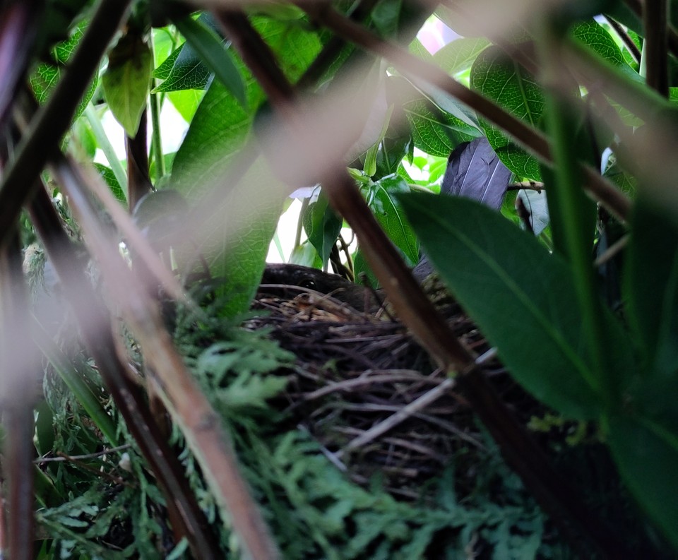Auch eine Amsel brütet im Gestrüpp - an der Schwanzfeder kann man sie erkennen