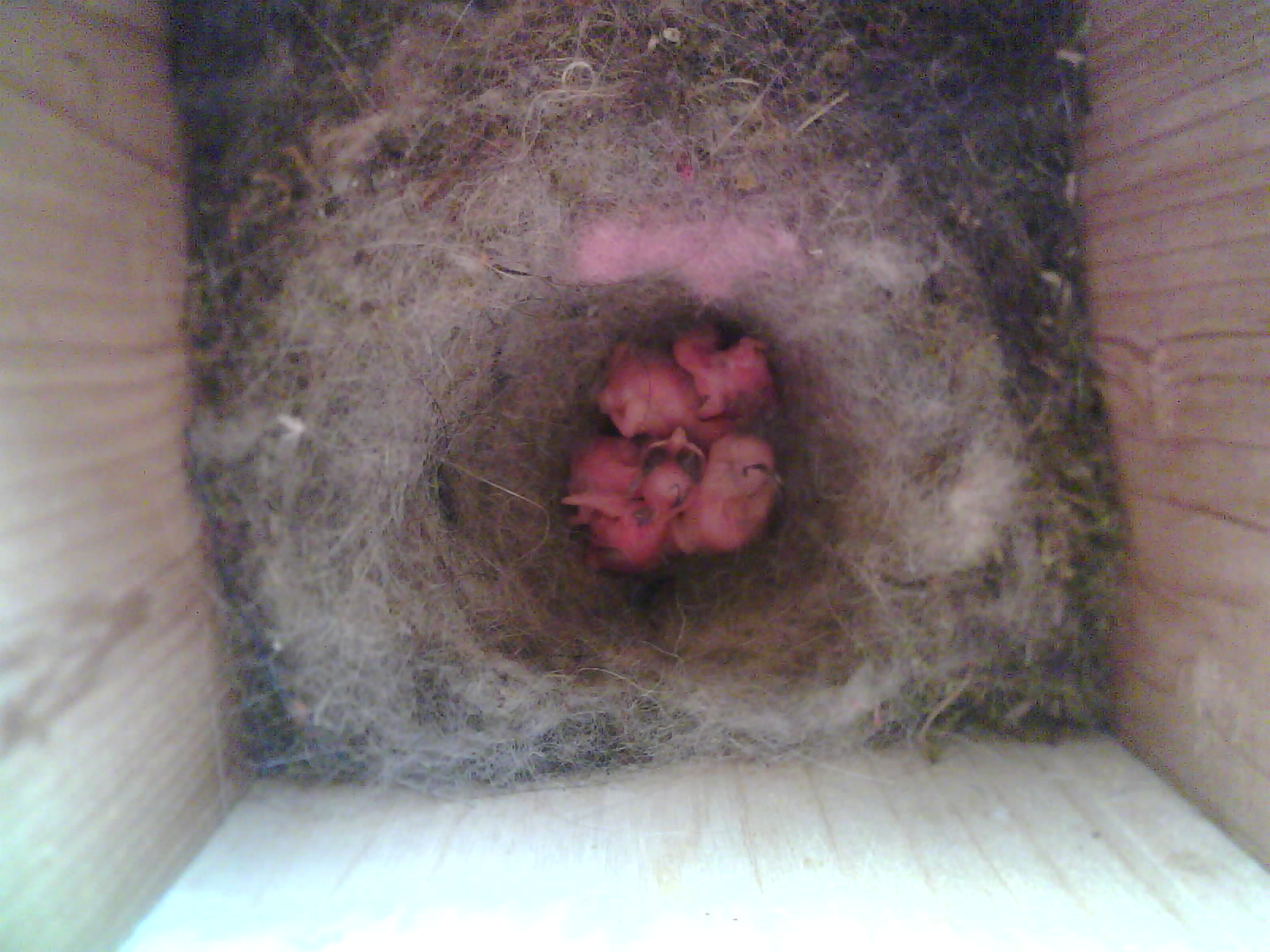 So sieht es aus, wenn Mama Meise unter sich nach dem Nachwuchs schaut: