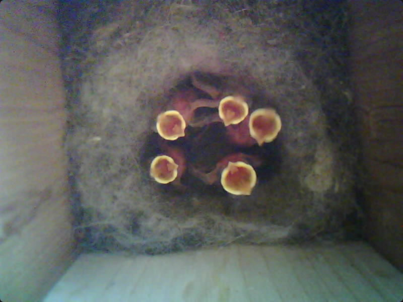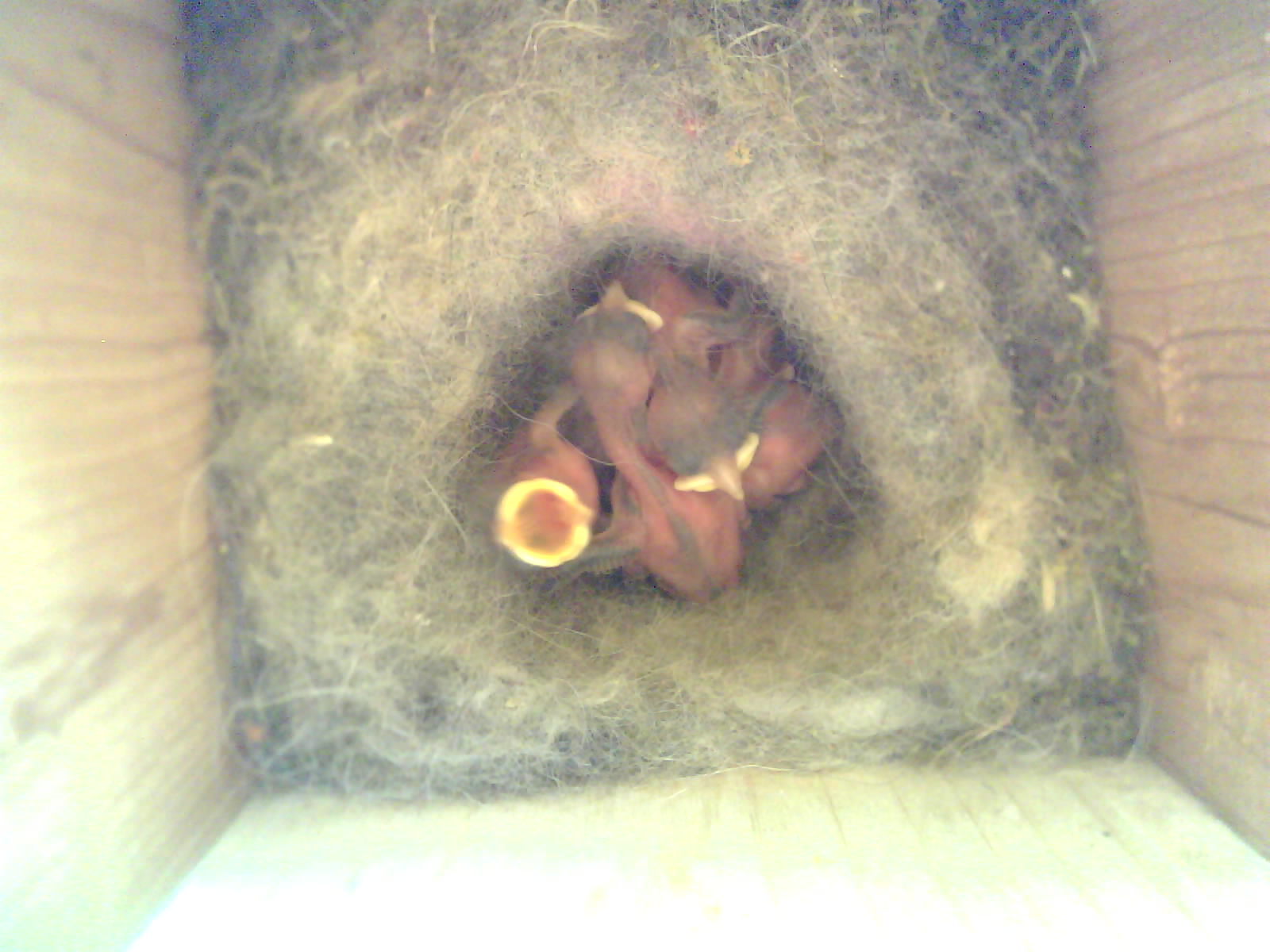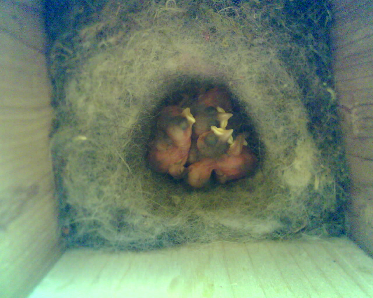 Die Küken wachsen rasant - kein Wunder bei der Futtermenge. Alle 5 Minuten bringt jemand ein Insekt zum Fressen. Sie werden tagsüber meistens nicht gewärmt, da sind beide Eltern am Fressen suchen.